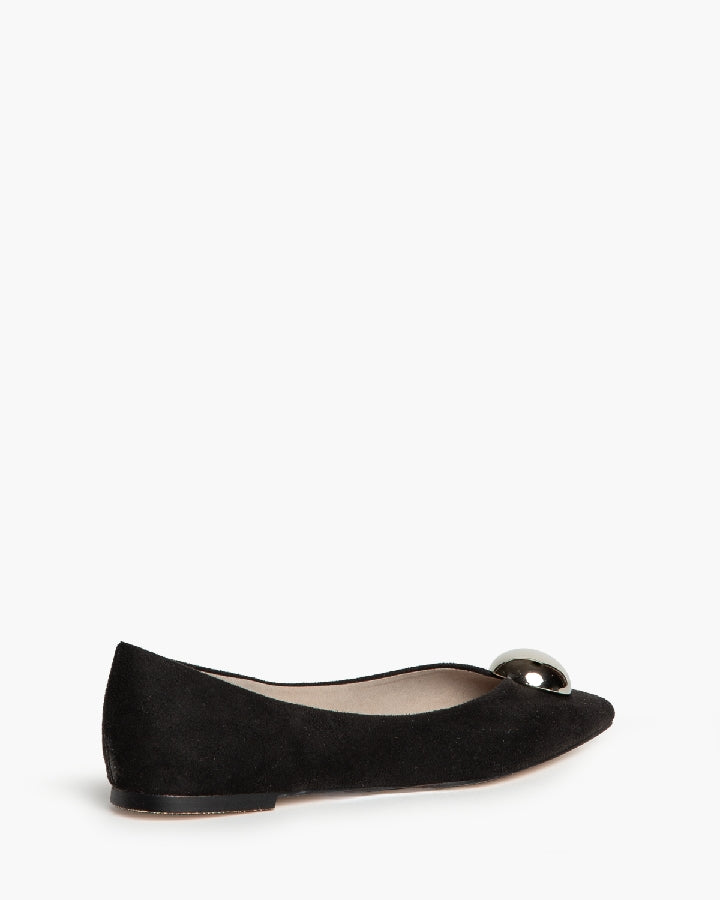 Sabrina preta de camurça com aplique prateado à frente, Corina.
